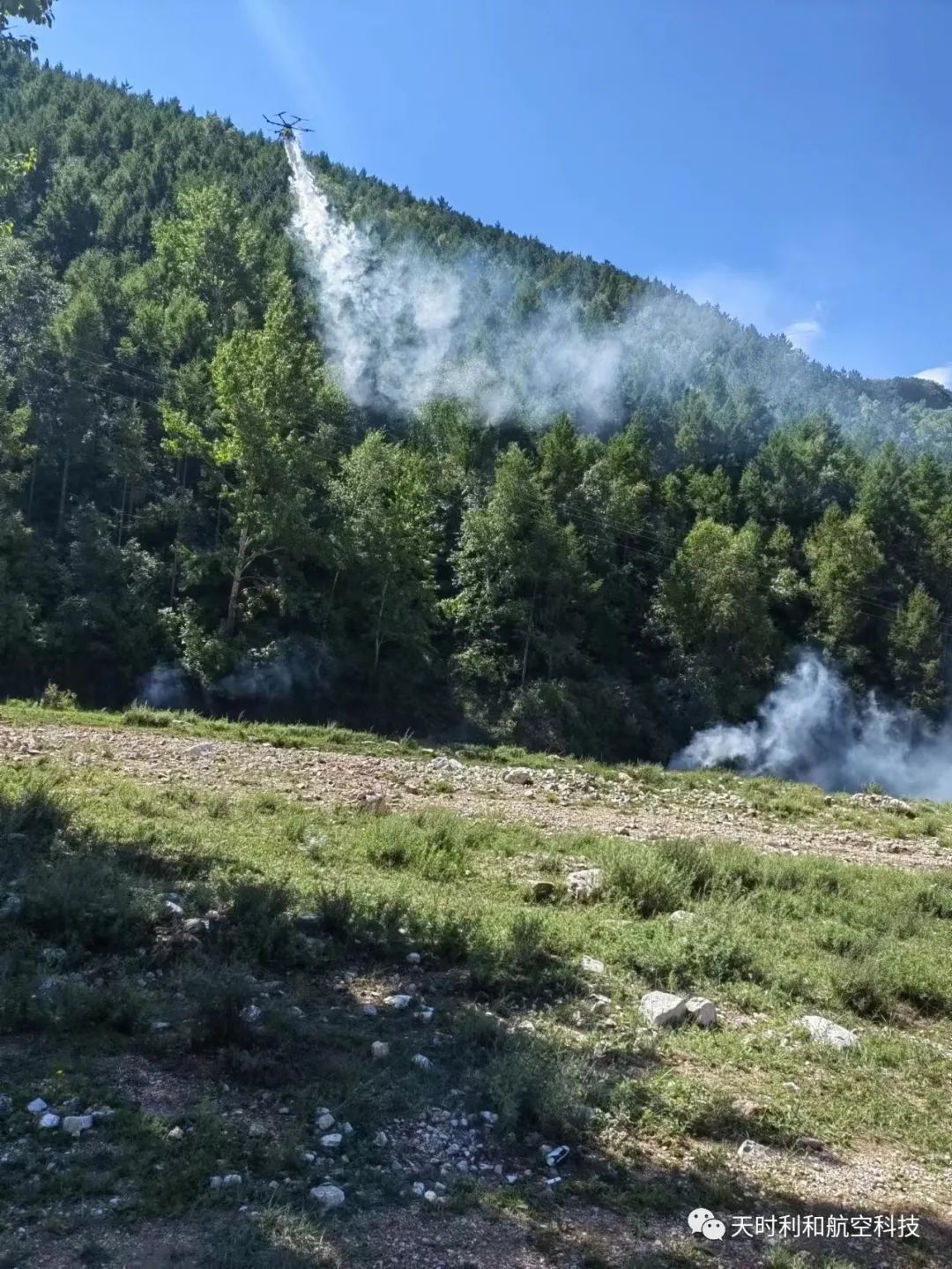 2023年8月4日至8月5日,公司飛防組人員又趕到位于大同市靈丘縣五臺山國有林局唐河林場史莊轄區的石翁村和落水河云彩嶺林區,對落葉松鞘蛾進行無人機噴煙作業。多次的噴煙作業,公司團隊更加熟悉無人機噴煙作業的規律,防治效率不斷提高,對森林病蟲害的防治工作更有信心,這次飛防作業同樣取得令人滿意的成效,公司再次為保護綠水青山奉獻出企業的一份社會力量。
